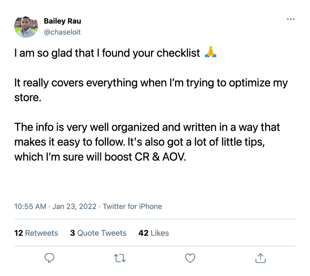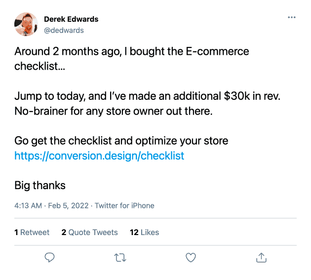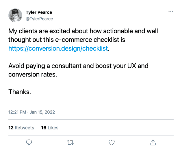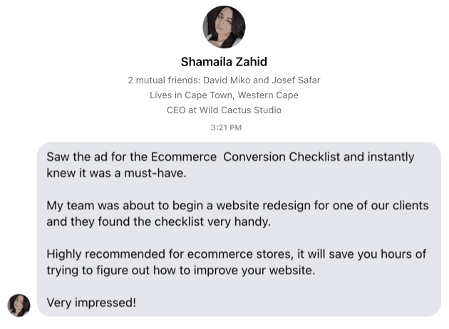 Satisfied e-commerce owners have already increased their conversion rates using my E-commerce Checklist.