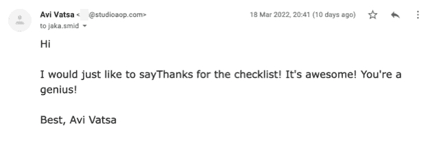 I’ve seexn my fair share of checklists during the years, this one takes the cake. Looks super comprehensive and it’s ACTIONABLE. Superb job!